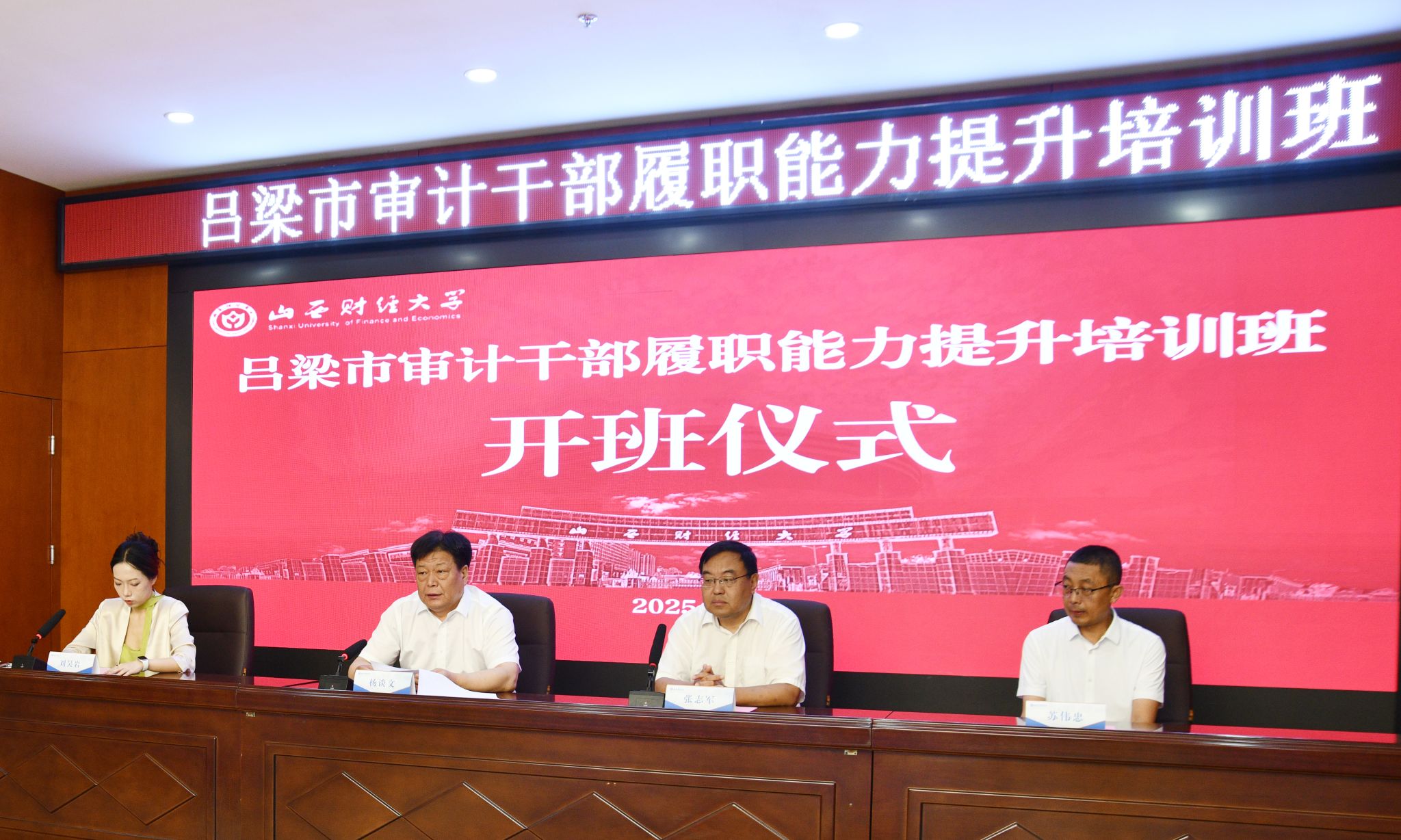 承办的“吕梁市审计干部2025年履职能力提升培训班”在我校坞城校区博学楼二层会议室顺利开班,来自吕梁市审计局机关及局属事业单位、各县(市、区)审计局的60名相关人员参加培训。
