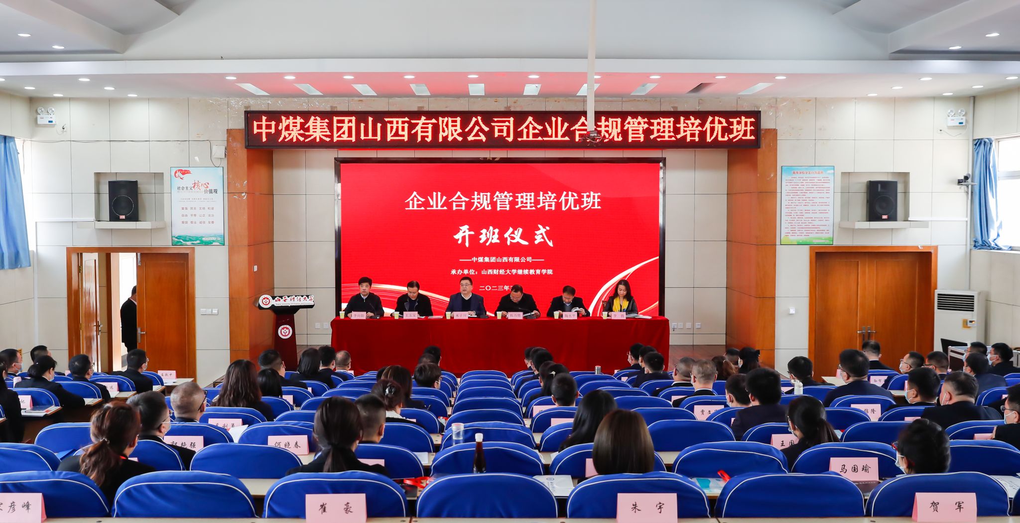 为进一步深化校地合作,提升中煤集团山西有限公司干部领导能力和专业化水平,中煤集团山西有限公司“企业合规管理”培优班于3月17日在我校坞城校区敏行楼学术报告厅隆重开班,党委常委、副校长米子川出席开班仪式并致辞。山西财经大学人事部部长王玉宝、中煤集团山西有限公司副书记拓万胜、人力资源部负责人及各基层煤矿有关人员共90余人参加培训,开班仪式由在线斗地主 党委书记、院长李向阳主持。